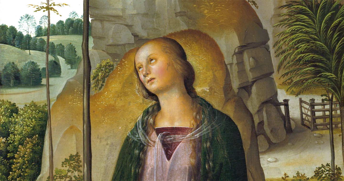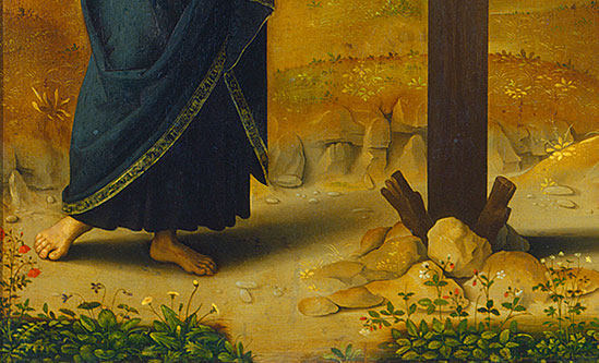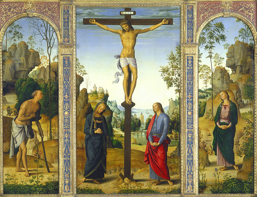 Pietro Perugino, The Crucifixion with the Virgin, Saint John, Saint Jerome, and Saint Mary Magdalene (detail), c. 1482/1485, oil on panel transferred to canvas, National Gallery of Art, Washington, Andrew W. Mellon Collection, 1937.1.27.a–c