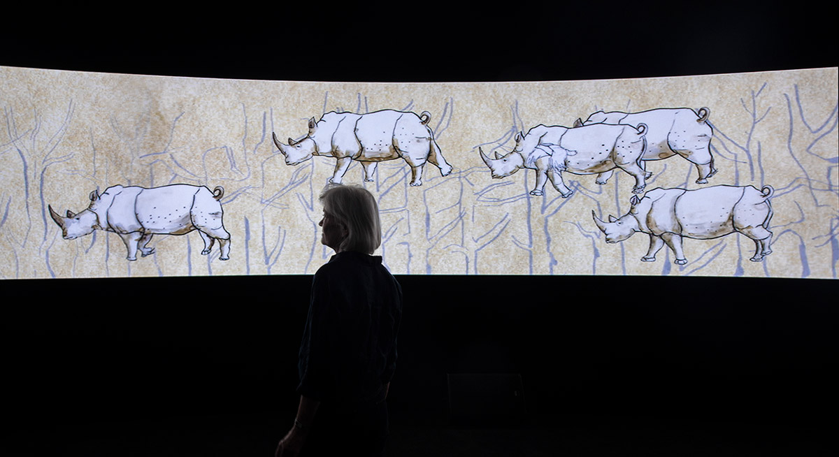 Rhinos have been a recurring theme in my work. I have also used them in my “Theater” paintings with video projections, which were based on the Theatre of the Absurd, especially Eugène Ionesco’s play Rhinoceros.