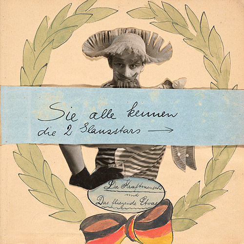 On another page, we see the pair dressed in matching striped tank tops. “We all know the 2 Superstars,” a paper tab notes. When pulled back, it reveals Stern in drag as the Strongman, and Auerbach wearing dainty wings as the ambiguously gendered Flying Something.