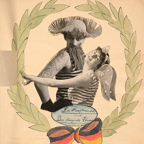 In 1931, Auerbach created a remarkable book as a birthday gift for Stern. Die Ringlpitis is filled with drawings, photographs, mixed media collages, handwritten poems, and ironic proclamations. Through an eclectic mix of imaginative and documentary imagery annotated with insider commentary, Auerbach illustrated the pair’s daily life and their collaborative and queer relationship.