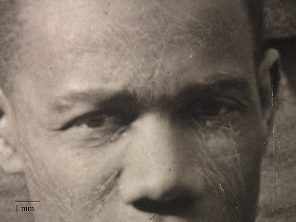 These details from Alpha Phi Alpha Basketball Team taken with a microscope at 15x magnification show retouched shadows.