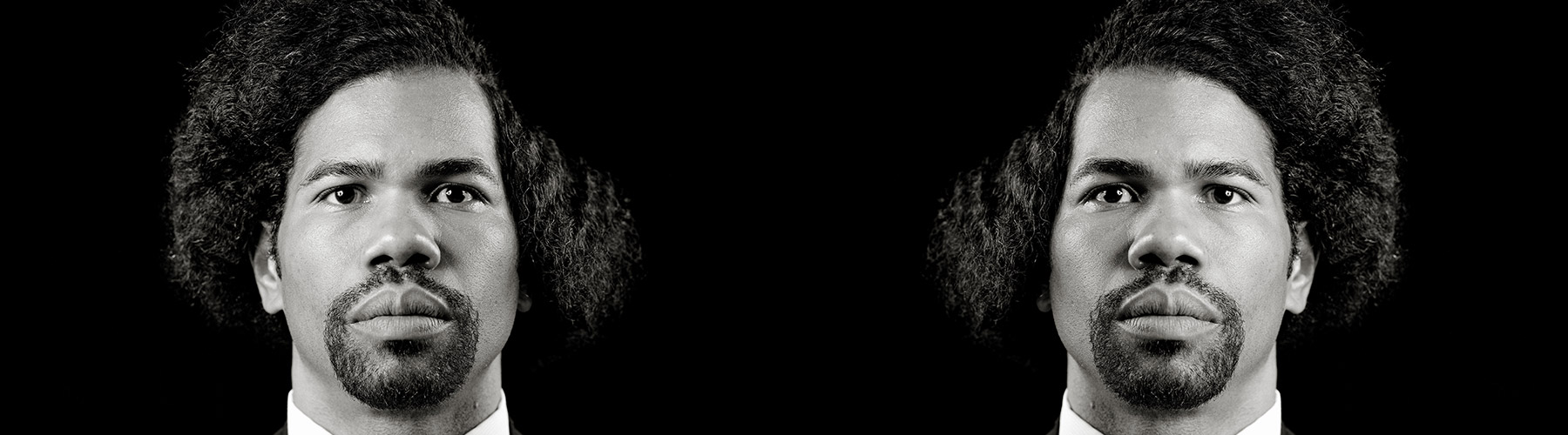 This is Rashid Johnson’s The New Negro Escapist Social and Athletic Club (Emmett) (2008), and upon closer examination, one discerns that the photograph is not actually of twins but of one man, doubled. The two images in the frame are reflections of one another — the man and his mirror image placed side by side. It is as if the photographer has made a double exposure by flipping the negative, exposing it once and then turning it over to expose its inverse. As viewer, it is impossible to discern which is the “original” and which is its inverted duplicate, and in this way the image highlights the confounding ontology of reproducible photography, the copy without an original. . . .
