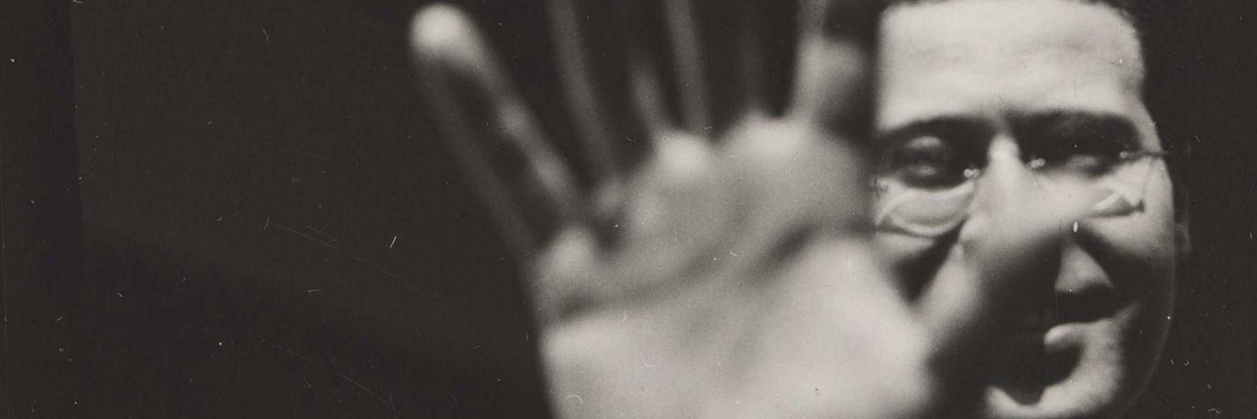 Banner: László Moholy-Nagy, Selbstportrait mit Hand (Self-Portrait with Hand), 1925–1929, gelatin silver print, courtesy of the Moholy-Nagy Foundation