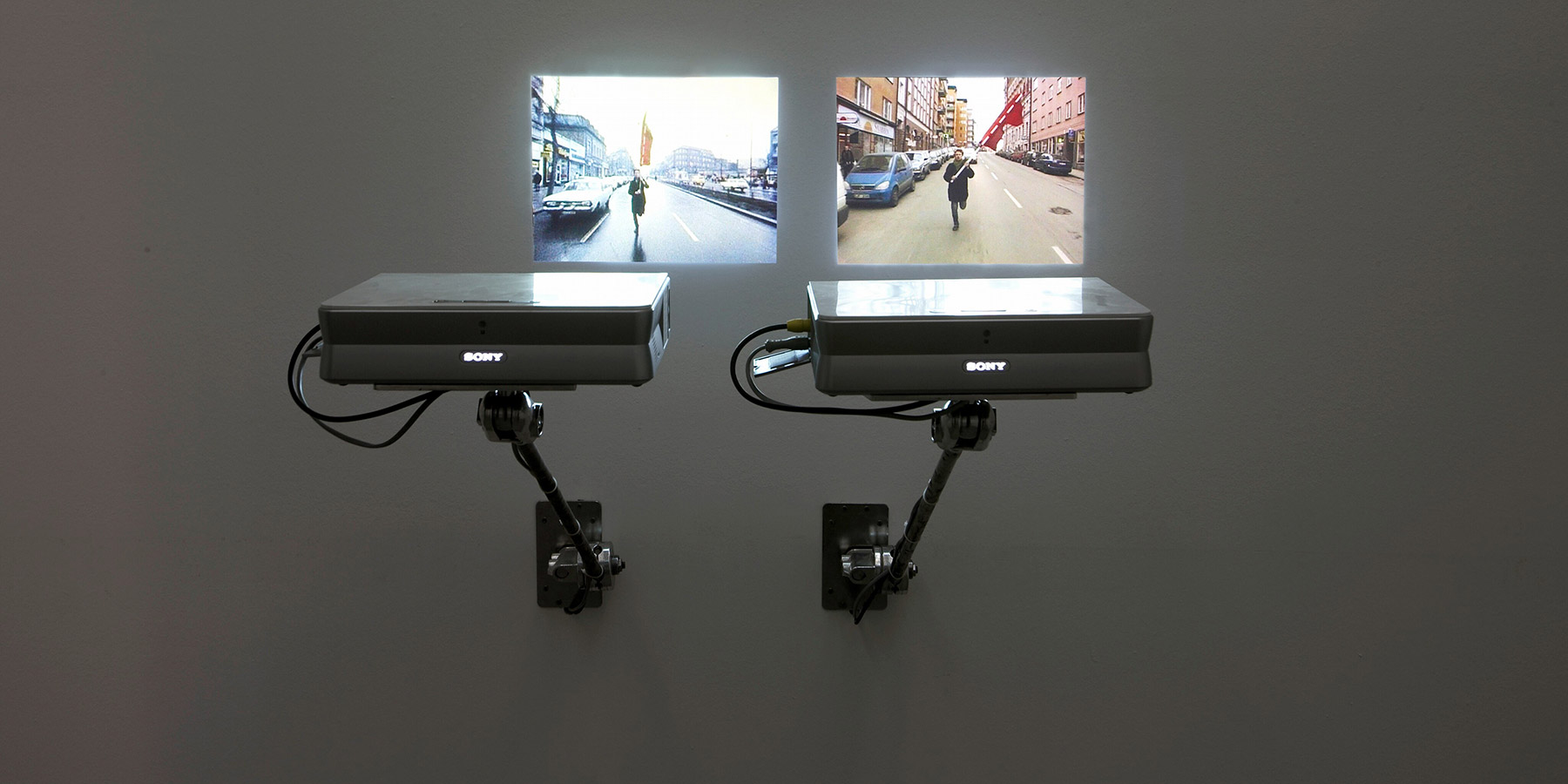 Felix Gmelin, Color Test (Red Flag #2), 2002, two-channel digital video installation, transferred from 16mm film, projected, color, silent, 10:28 minutes, Courtesy of the artist