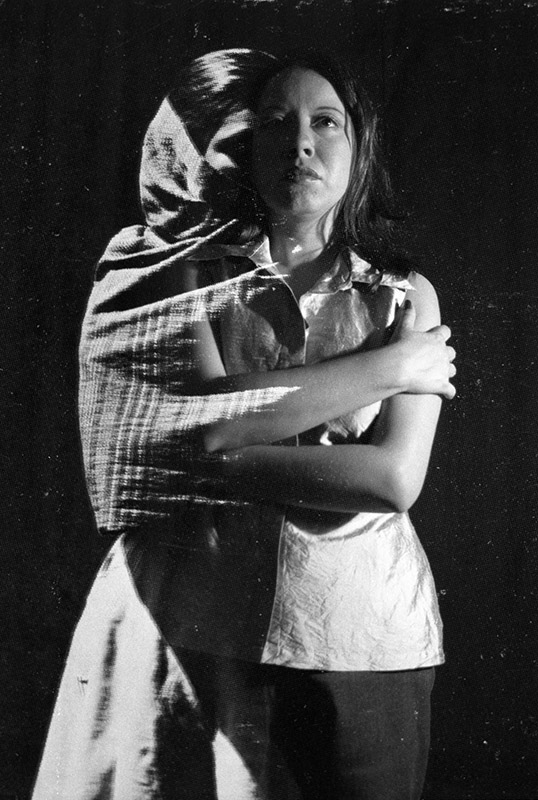 Fernandez first photographed existing, published images, then magnified them. She also took pictures of herself in the studio. Then, she created double exposures, adding her own likenesses to the pictures (of the pictures) of the Indigenous women.
