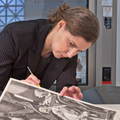 Paper conservators are committed to the preservation, conservation treatment, and study of prints, drawings, and bound volumes. Works on paper and parchment are subject to damage from many sources—rough handling, inhospitable environments, exposure to light, and poor-quality housing materials. Conservators tailor treatments to alleviate deterioration and repair damage, respecting the unique characteristics of the work of art. We mend tears and fill losses in paper, lessen disfiguring stains and discoloration, reattach loose paint flakes, and remove acidic mounting materials. Working with other preservation specialists, we promote proper methods of storage, handling, and display.