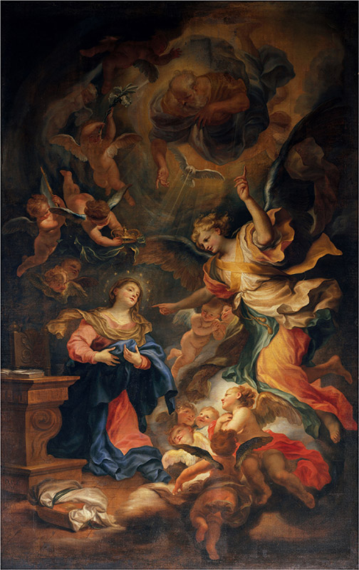 Domenico Piola, The Annunciation, 1679, oil on canvas, Basilica della Santissima Annunziata del Vastato, Genoa. Photo by Luigino Visconti