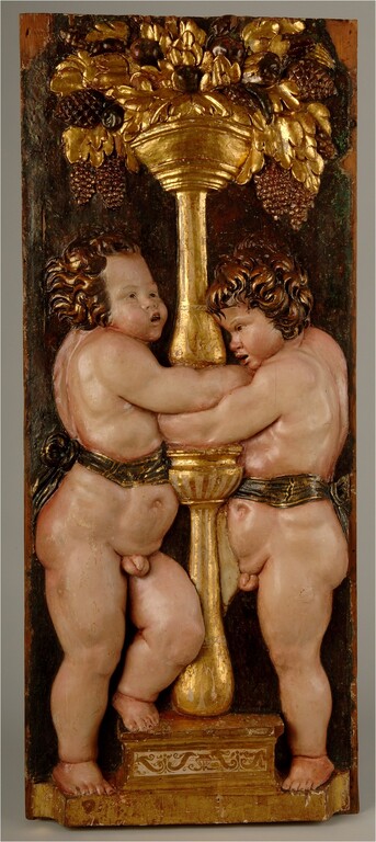 Fig. 18: Alonso Berruguete, Relief with Putti, 1526/1533, painted wood with gilding, Museo Nacional de Escultura, Valladolid. © Museo Nacional de Escultura, Valladolid (Spain), photo by Javier Muñoz and Paz Pastor
