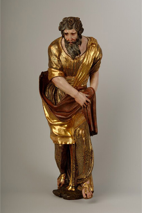 Fig. 10: Alonso Berruguete, Saint Christopher (detail of drapery composed of fabric and glue), 1526/1533, painted wood with gilding, Museo Nacional de Escultura, Valladolid. © Museo Nacional de Escultura, Valladolid (Spain), photo by Javier Muñoz and Paz Pastor