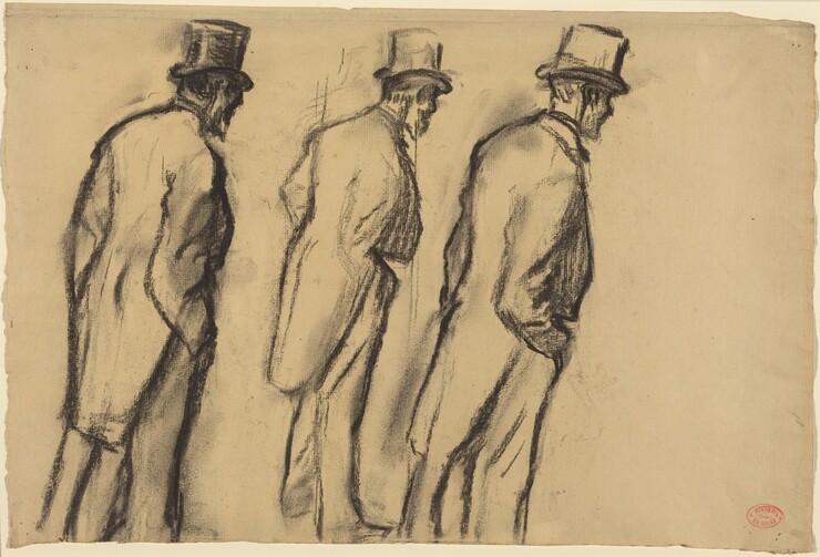Edgar Degas, Three Studies of Ludovic Halévy Standing, c. 1880, charcoal on tan laid paper, Collection of Mr. and Mrs. Paul Mellon, 1985.64.88