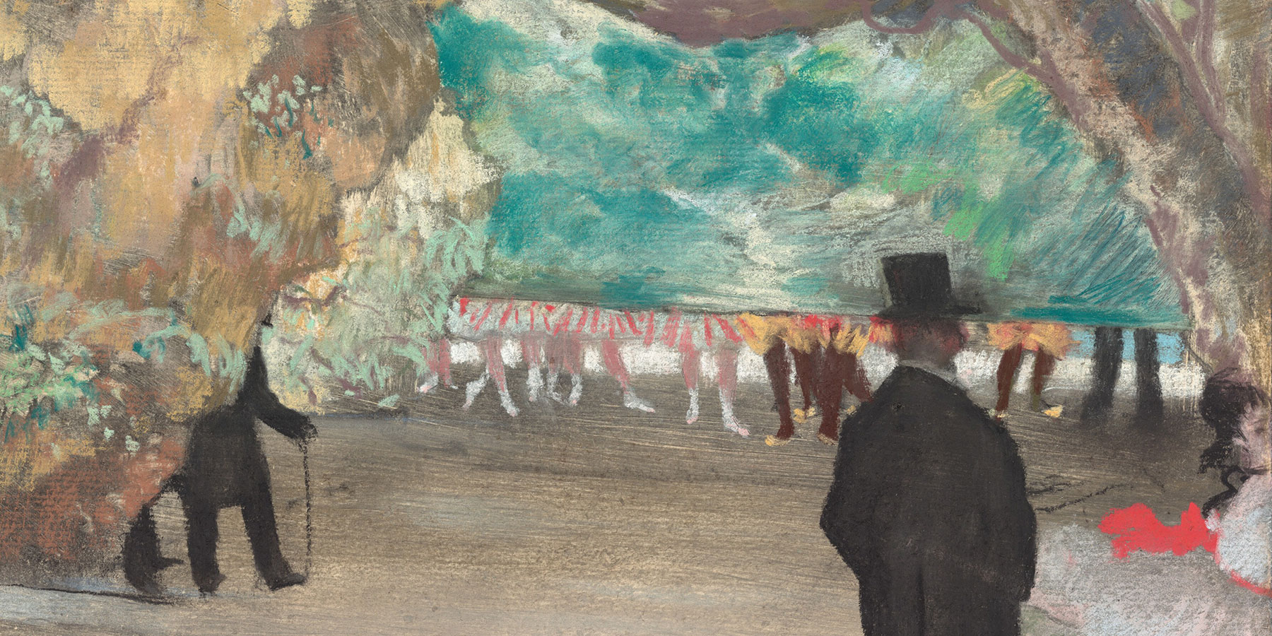 The thriving musical and theatrical life of 19th-century Paris gave Edgar Degas his pick of opera companies, but he formed an attachment only to one: the Paris Opéra, an illustrious institution tracing its origins to the Royal Academy of Music founded by Louis XIV in 1669. From its inception, the academy staged operas that integrated music and dance, and as the genre developed over the next two centuries, French opera audiences continued to expect ballet sequences alongside arias. For Degas as well as many of his contemporaries, the ballerinas remained a key attraction of French opera. [fig. 1]