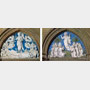 The first relief represents Christ’s resurrection on the third day after his death on the cross. Luca’s figures stand out strongly against the blue background by virtue of their modeling and white color, rendering them clear and readable even at a distance. The companion relief depicts the ascension of Christ to heaven 40 days after his resurrection. This composition is distinguished by a greater variety of color, especially in the greens that characterize the earthly realm from which Jesus ascends.