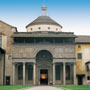 The Ospedale degli Innocenti (Hospital of the Innocents), dedicated to the care of orphaned and abandoned children, was designed by Filippo Brunelleschi in the 15th century with an elegant loggia, or covered arcade, overlooking Piazza Santissima Annunziata. Andrea della Robbia decorated the spandrels of the loggia with circular reliefs of swaddled infants on a blue ground.