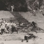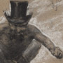 This image of Satan holding reins and crouched atop the world alludes to Shakespeare’s All’s Well That Ends Well, in which the Clown uses an old English proverb to explain his desire to marry: “I am driven on by the flesh; and he must needs go that the devil drives.” Here, fierce wit and sheer graphic force bring the image to life. Michetti had many literary acquaintances, the closest of whom was the celebrated poet and critic Gabriele D’Annunzio. Their relationship began in 1880, with Michetti’s art becoming a frequent topic of the author. D’Annunzio’s critique of naturalism encouraged the artist’s interest in more metaphoric content. Shakespeare was one of D’Annunzio’s favorite authors. It is easy to imagine this drawing arising from conversations between artist and writer, moreover to recognize D’Annunzio’s features in those of Satan.