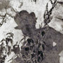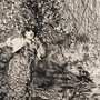 aquatint and softground etching with monotype inking, proof touched with graphite and blue pencil on chine collé