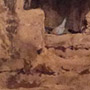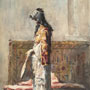 Fortuny’s visit to Morocco in 1860 inspired his fondness for exotic subjects, such as this Moroccan woman and the adjacent etching of a dead Algerian. The striking palette, remarkably varied textures of materials, loosely applied pigment, and freedom of handling exemplify the qualities that Fortuny’s contemporaries greatly admired in his work. Spanish born, Fortuny traveled incessantly but spent much of his last decade in Rome. His etchings, all made in this late period, inspired a generation of Italian printmakers to take up the technique and echo his style.