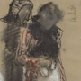 This drawing is a study for an important painting of Michetti’s maturity, The Mocking (Il Dileggio), which shows a group of peasant women dressed for church in their finest clothing, walking along a riverbank past a group of jeering men. It is typical of both the artist’s interest in the popular culture of his native Abruzzi region and his turn in the 1880s from straightforward realism to moral and eventually symbolic themes. The drawing hints at the poses of the principal women in the painting but really attends more to their costume. While its beautifully modulated color reflects Michetti’s recent mastery of pastel, its extreme sensitivity to light bespeaks his growing interest in photography.