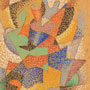 This drawing is closely related to one of the most important paintings of Severini’s brief futurist period. The dancing shapes, vibrant surface, and luminous color accord with the movement’s aesthetic, while the fractured subject (the ballerina of the title), barely recognizable by a head represented by a red cone at top and a triangular left arm raised, reflects Severini’s experience of cubism in Paris, where he had moved in 1906. Severini’s brushwork, broken into countless dots of pigment, distinguished him from other futurists and allied him with the divisionists, with whom he had trained in Milan.