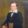 Captured as he is about to leave for school, young Webster (1834–1872) pauses at the door, cap in hand. With his slightly unruly hair and perhaps a faint smile, he stands in the corner before what appears to be a fireplace mantel, and upon a colorful yet fairly common Venetian carpet. While probably true to life, the size and shape of the boy's head may reflect the nineteenth-century interest in phrenology, a pseudoscientific belief that the shape of the skull could indicate intelligence and character. Here, Webster's broad forehead sculpted in light may have been intended to suggest the boy's astute and moral nature.