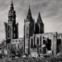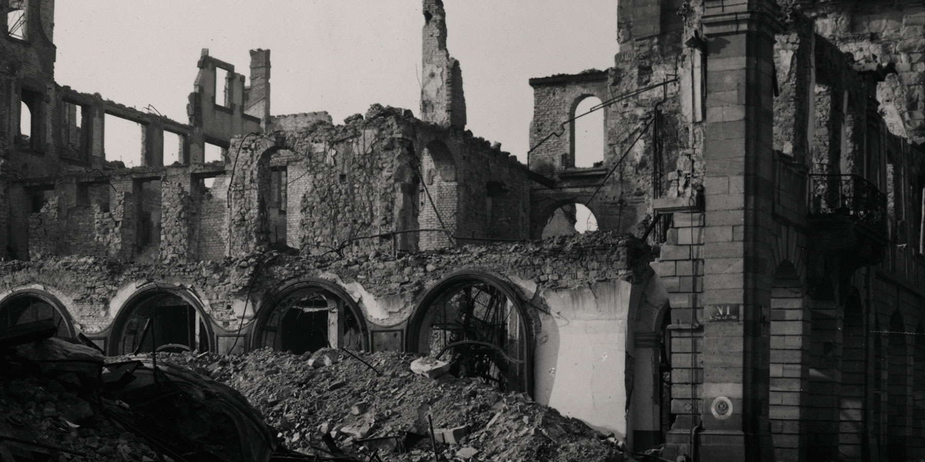 During World War II, Allied air raids decimated central Stuttgart. View after bombardment from the Marktplatz , with forward to the Württemberg volume.