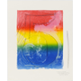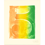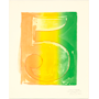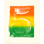 Preliminary impressions, known as proofs, are regularly pulled during a print’s development. Each one presents the artist with the opportunity to evaluate the development of the image and to consider the next steps. Johns embellished with crayon, chalk, and paint many of the proofs that were pulled during the development of Color Numerals. The various proofs for Figure 5, for example, show Johns testing the impact of blue on the color palette and the effect of vertical rather than horizontal bands of color. Several include additions in the artist’s own hand as he adjusted a contour, or added a gestural brush mark or crayon scribble. Johns retained, annotated, and signed each one of the Color Numerals proofs.