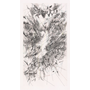 Bilaterally symmetrical and vaguely cruciform, the distribution of calligraphic marks, daubs, and sprays in the first panel of Myriads, Only by Dark resembles a splayed and messily dissected human body. Subtitled (unfolded body map), the anthropomorphic form drips rivulets of grey ink and is bracketed by handprints that recall prehistoric cave paintings or artwork by David Hammons. In the second print, the mass disperses into myriad feathery gestures and staccato marks. Its subtitle, (mathematics of droves), calls to mind population and migration statistics. In the third and fourth prints, skeins of calligraphic strokes appear to coalesce around a nebulous chasm that eventually resolves into a colorfully tinged rhombus. The subtitles, (indigene) and (origin), connote ancestral and geographic roots. Invoking anatomy, cartography, and history, Julie Mehretu (American, born Ethiopia, 1970) imagines identity as a blend of individuality, collectivity, past, and present.