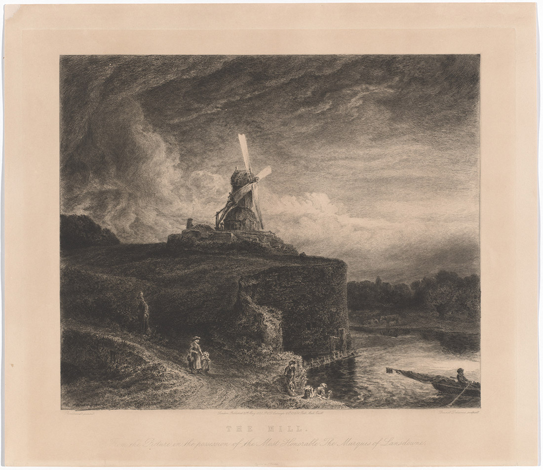 This large print is an etching by Brunet-Debaines after Rembrandt’s The Mill, a painting now in the collection of the National Gallery of Art (1942.9.62). It was commissioned by P. & D. Colnaghi & Co. in 1880, the leading producer of prints after 16th- and 17th-century European paintings and the world’s oldest commercial art gallery. At the time the print was commissioned, the painting was in the collection of Henry Charles Keith Petty-Fitzmaurice, the 5th Marquess of Landsdowne, which is clearly inscribed at the bottom of the print.