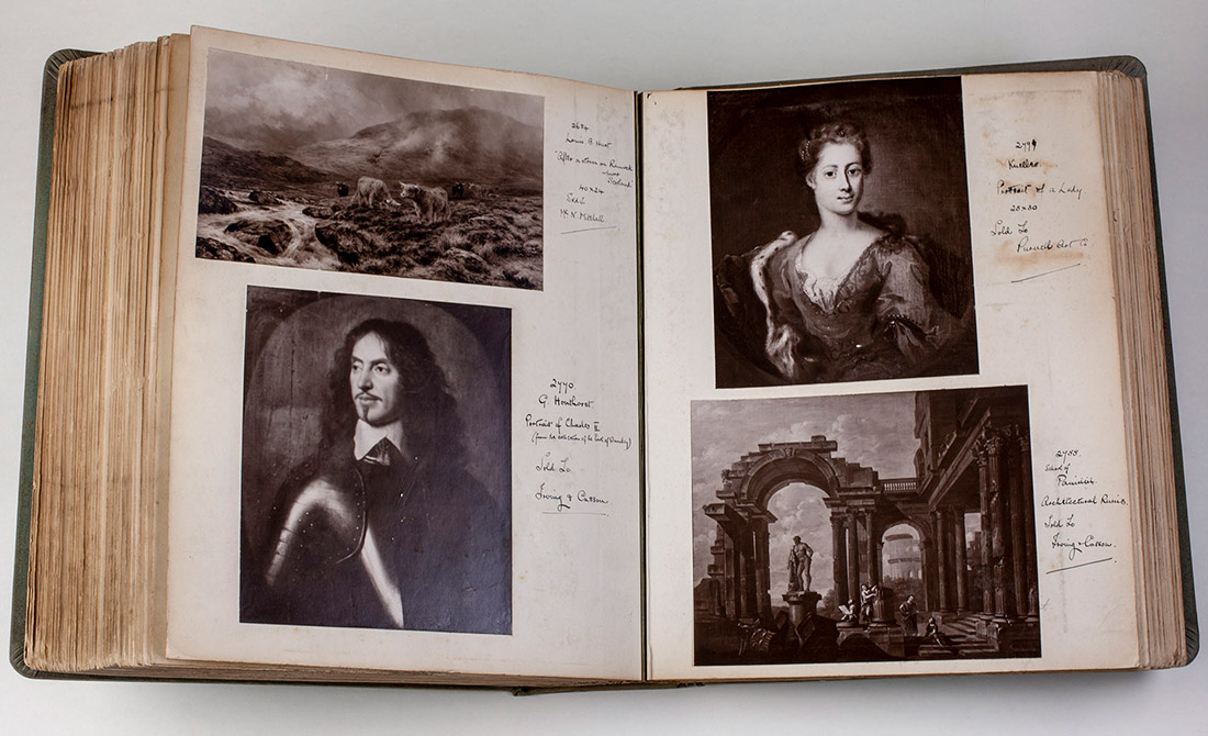 Artworks often come from far and wide to fill the walls of an exhibition and remain there temporarily. Forms of ephemera such as photographs and albums commemorate exhibitions and later serve to document the special assemblage. The images and inventories generally provide the title and date of the artwork, as well as the collections they belonged to at the time of the exhibition. The identification of collectors is particularly useful because it is not out of the ordinary for art that remains in private hands to go unrecorded for periods of time.