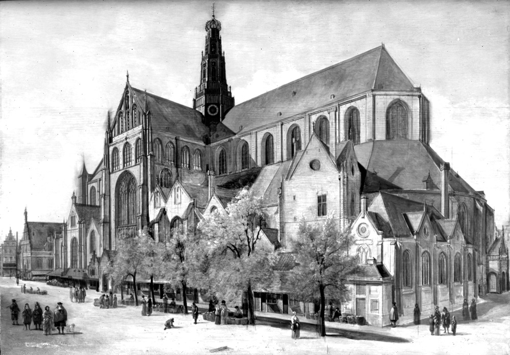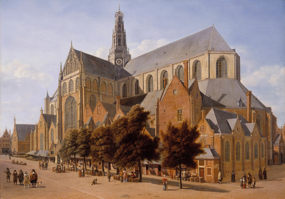 Gerrit Berckheyde, Dutch, 1638-1698, The Grote or St. Bavokerk in Haarlem, 1666, oil on panel, Otto Naumann Ltd, New York