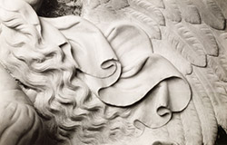 Photographing marble sculpture in situ requires a light source bright enough to illuminate the sculptures without obliterating the details and producing dark shadows. Kennedy solved this problem with his “pencil of light” method, where a bright light source was moved continuously over the object during a long exposure. He would leave the shutter of the camera open for a longer period than necessary, adding anywhere from minutes to hours to his process to allow his camera to capture the shifting light. This method would introduce desirable reflections and soften edges in order to mimic diffused daylight, resulting in what he called a “thick negative,” rich and full of detail.