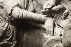 Clarence Kennedy (1892–1972), an art historian at Smith College and self-proclaimed “scholar-photographer,” revolutionized documentary art photography with subtle and illuminating details of Italian Renaissance sculpture. The limited photographic resources available for teaching art history in the early 1920s led Kennedy to pursue photography, eventually resulting in his photographic series Studies in the History and Criticism of Sculpture. Sculptors with large workshops, such as Andrea del Verrocchio (c. 1435–1488) and Desiderio da Settignano (c. 1429–1464), particularly inspired him. His exquisitely detailed photographs allowed him to compare motifs, methods, and styles to propose distinctions between the master’s hand and the work of his assistants.