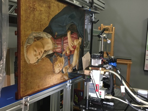 Ghirlandaio’s Madonna and Child undergoing x-ray fluorescence imaging in the scientific research department, National Gallery of Art