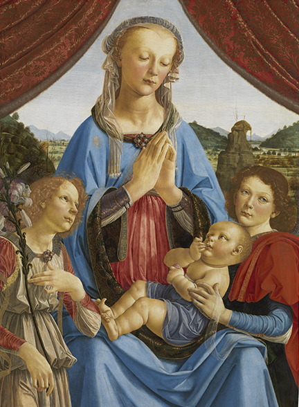 Andrea del Verrocchio and assistants (Leonardo da Vinci and Pietro Perugino), Madonna and Child with Two Angels, c. 1470/1474, tempera on panel, The National Gallery, London, Bought, 1857. © The National Gallery, London