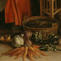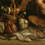This painting is one of several by Wtewael that follow a Dutch tradition of pairing a foreground kitchen scene with a background religious one.