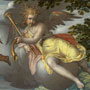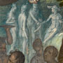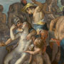When the sea nymph Thetis married Peleus, hero of Thessaly, all the gods were invited but one—Eris, goddess of discord. Annoyed at this slight, she appeared anyway, wreaking havoc by tossing into the crowd an apple inscribed “for the fairest.” Juno, Venus, and Minerva would scramble for the prize, setting in motion the events that led to the Trojan War. Wtewael filled his small (14 3/8 x 16 9/16 in.) copperplate with dozens of cavorting deities and putti who revel in the merriment of the occasion, oblivious to the looming clouds. The crowded, complex scene invites the viewer to look closely and discover a veritable who’s who of ancient mythology.