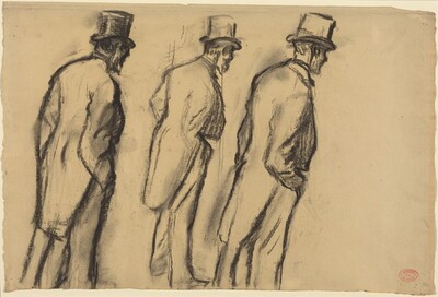 Edgar Degas, Three Studies of Ludovic Halévy Standing, c. 1880, charcoal counterproof on buff wove paper, Collection of Mr. and Mrs. Paul Mellon, 1985.64.167