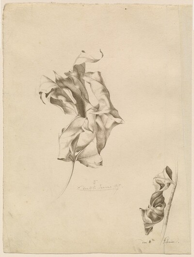 Friedrich Olivier, Shriveled Leaves, 1817, pen and gray-black ink and pen and black ink over graphite on wove paper, Wolfgang Ratjen Collection, Patrons' Permanent Fund, 2007.111.137