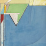 High Green Version I may be traced back to Diebenkorn’s experience of looking out the window of an airplane and being struck by the landscape’s abstract structure, which, he later said, “had so many things I wanted in my [art].” In the print’s “high” region, a bright-green form is adjoined by a dark V, which acts like a visual retaining wall, keeping the upper region from eroding and seeping into the expanse of blue below.