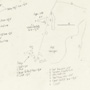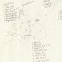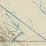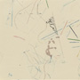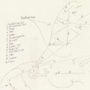 The Changes and Disappearances series is Cage’s most complicated print project. Every mark, color, and image resulted from questions answered by numerous chance operations. Cage recorded every result on a score devoted to each print. He then created maps, or printing guides, by tracing the placement of each plate and annotating the tracings with every mark, line, image, and color to be used. Changes and Disappearances 32 was printed using thirty-six unique plates and required eleven maps (Cage is working on one in the photograph at left). The print is composed of eighty-five inked plate edges and 177 inked marks for a total of 262 distinct colored lines and shapes. If this sounds complicated, it’s because it is.