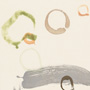 This print represents a shift in Cage’s method. Having previously relied on chance to make color selections, he composed a palette based on the color of the stones used to make the print. Also, he traced the stones freely with brushes, a technique he had avoided earlier. He did not completely abandon chance: the rocks were selected and positioned using chance calculations. In homage to the fifteen stones in the Zen rock garden at Ryoanji, he began with fifteen stones, which he traced. He made a test print and then, working in increments of fifteen stones, he added rock tracings and made further proofs (in the collection of the Fine Arts Museums of San Francisco). Cage concluded, based on aesthetics alone, that tracing seventy-five stones was just right.
