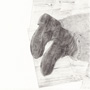 This print depicts a homeless person’s feet extending from a cardboard box. Working from a photograph, Smith began by drawing an image onto a copperplate, then adding tone and color. She envisioned an iridescent effect at the bottom of the image, like “rainbows [in] oil slicks,” but deemed the first attempt unsatisfactory (see slideshow, above). The printer suggested flipping the copperplate over and printing the random, etched pits that appeared on the back, which produced the effect in the final print that Smith was after (see banner, above).