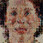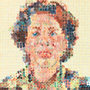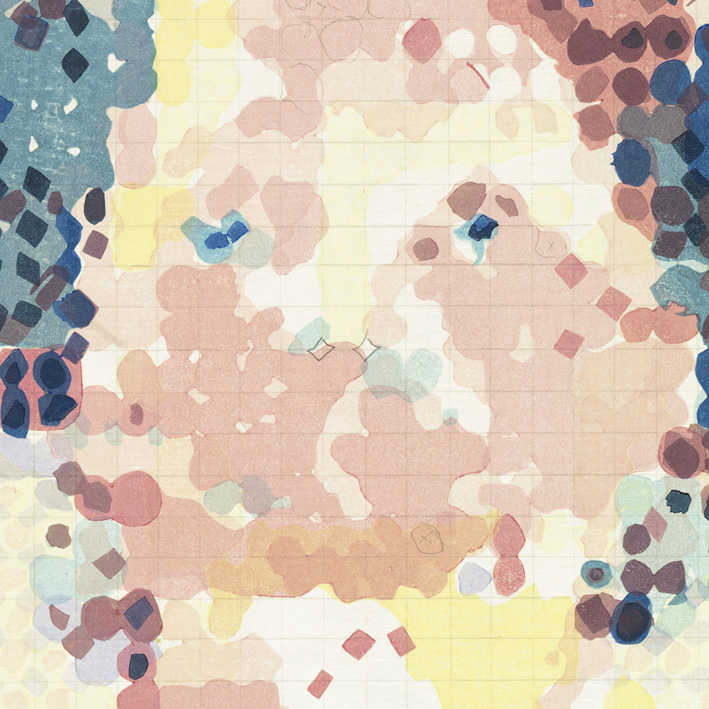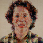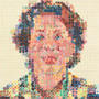 Challenged by the opportunity to have one of his portraits translated into a Japanese-style woodcut, Close devised a watercolor prototype made up of thousands of irregular blots and diamonds distributed across a grid. Specialized craftsmen in Japan translated the watercolor, carving it into a series of wooden blocks. Fifty-one blocks were required to produce Leslie, with many printed more than once. Indeed, each print in the edition was created by impressing the paper onto inked wood blocks 117 times.
