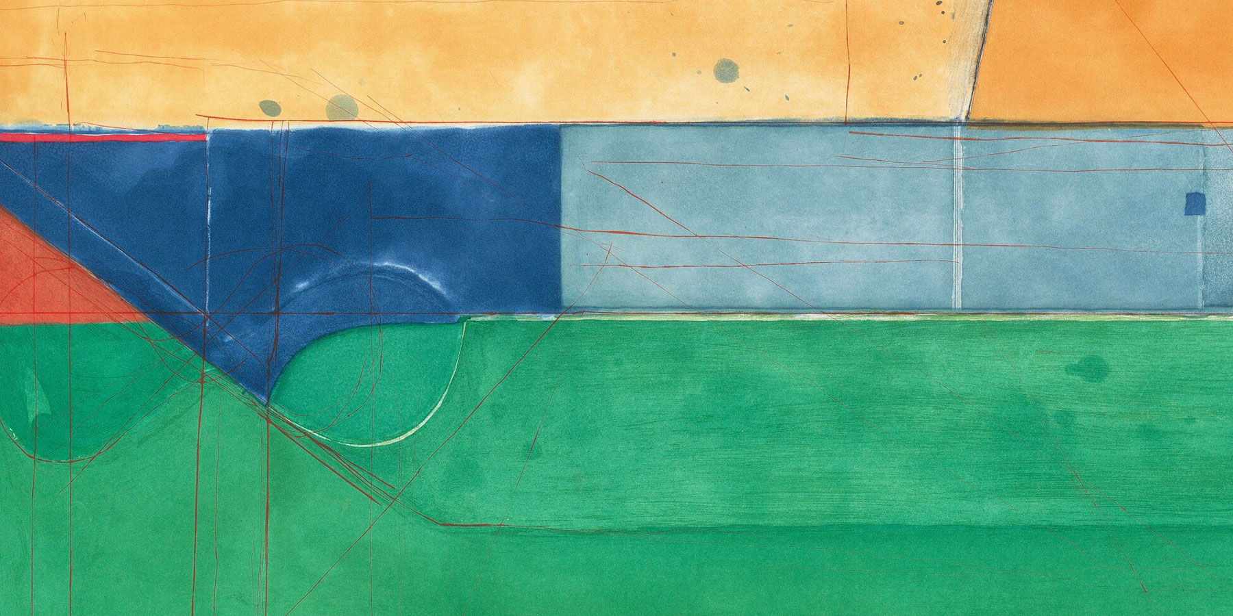 Banner image: Detail, Richard Diebenkorn, Green (working proof 7), 1986, color spitbite aquatint, soapground aquatint, and drypoint with pasted-down elements, Kathan Brown, © The Estate of Richard Diebenkorn