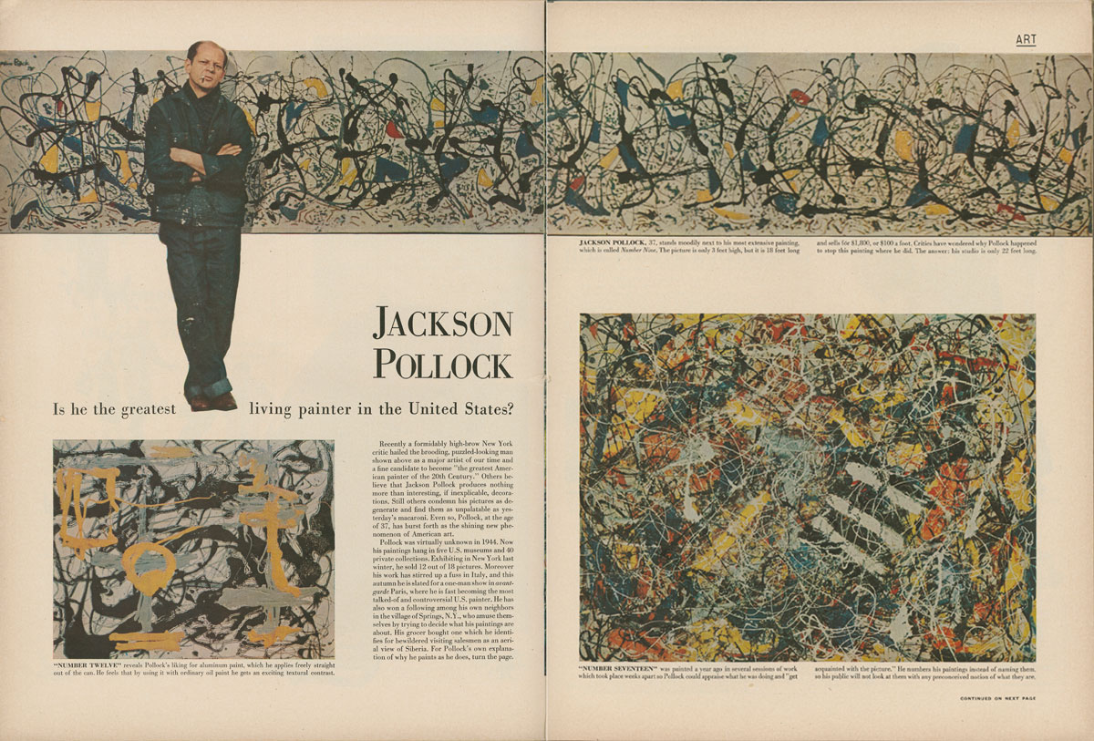 Pollock’s move from dark horse to darling of the art world came out of various concurrences: the powerful art critic Clement Greenberg’s insistence that Pollock’s work represented a new, authentic American art; a shift in the art world; and Pollock’s success, achieved over a period of years, at making gesture, line, texture, and composition the very subject of his canvases.