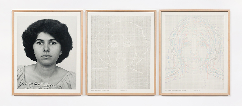 Charles Gaines, Faces: Set #11, Mary Ann Aloojian, gelatin silver print and ink on paper, 1978, Museum of Modern Art, New York, Gift of Dian Woodner in honor of Dr. Stuart W. Lewis and The Friends of Education of The Museum of Modern Art © 2021 Charles Gaines