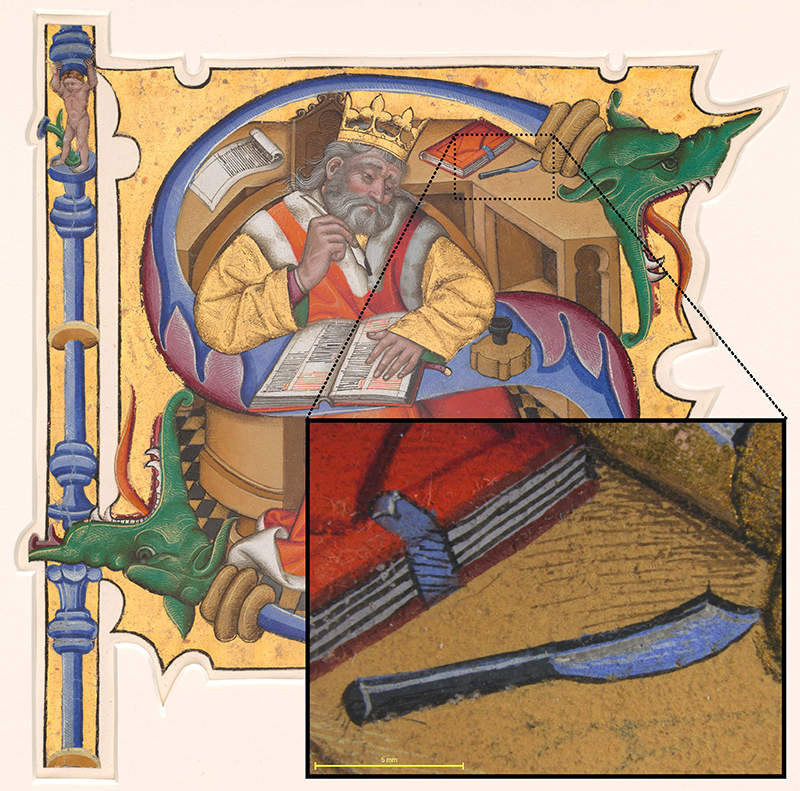 This collaborative project partially reconstructs a group of parchment cuttings from a richly illuminated choir book, including 13 initials in the Rosenwald Collection at the National Gallery of Art. With the goal of catalyzing an international working group, I explore questions of materials, working methods, fragmentation, and interpretation. Nearly 100 years since the invention of the Master of the Cypresses in 1928—a misleading singular label that confuses multiple makers and identities—the methods for distinguishing and attributing the hands of illuminators and scribes increasingly employ scientific analysis and computational tools. Unfolding from newly conducted hyperspectral pigment analysis, this project proposes to compare the ways colorants and binders were mixed or layered to unpack long-standing questions of attribution and authorship. The aggregate findings will offer a more contextual understanding of the processes and sociopolitical realities motivating the makers, users, and patrons of these musical “picture books.” The products of this research will be developed into a digital publication. My contribution to this planned, multiauthored volume includes an essay exploring the rhetoric of conversion, Inquisition, and “Judaizing” through the Initial T at the National Gallery of Art (1964.8.1219), depicting five brown-robed monks. Overlapping identities and typologies in this initial set out an ambiguous role for the bearded figure kneeling below a fountain, which springs from an altar—perhaps depicting the prophet Moses or Elijah.