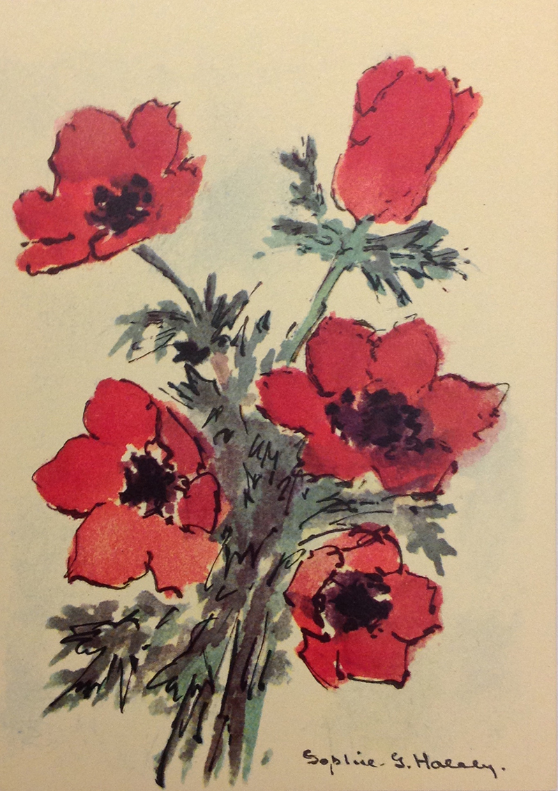 Sophie Halaby, Anemone, from Flowers of the Holy Land, c. 1948–1967, watercolor printed as postcard, George al Ama Private Art Collection, Bethlehem. Image courtesy of George al Ama
