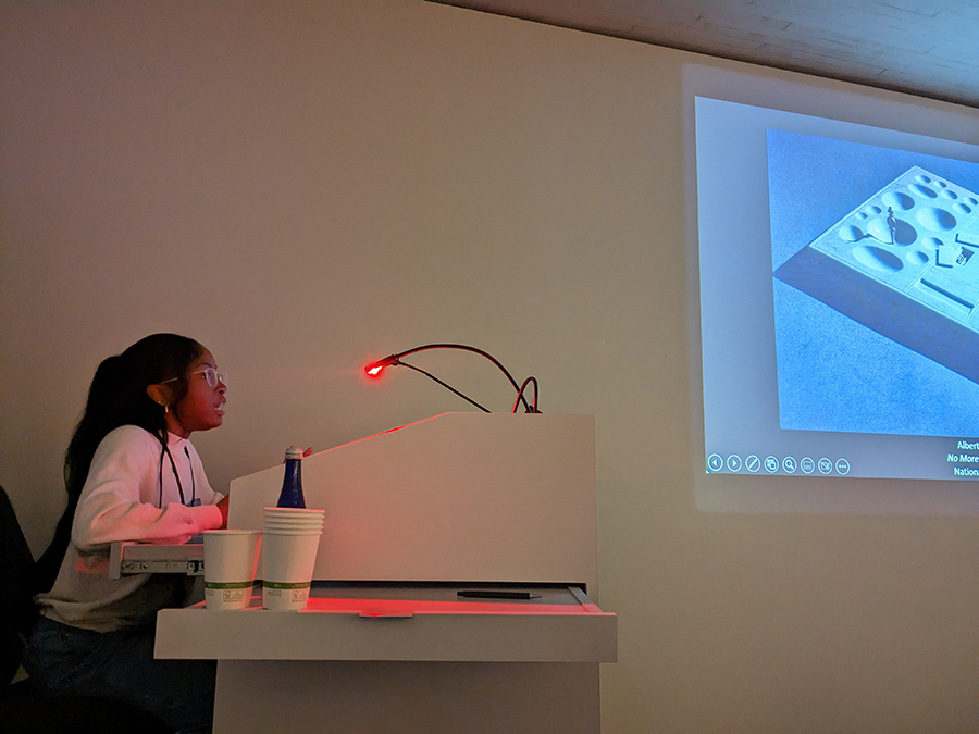 Amaya Charley presents her research in progress, April 2023. Photo: Elise Ferone
