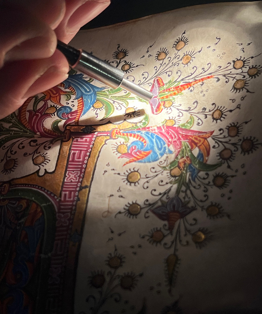 This collaborative art history, conservation, and scientific research project explores materials and working methods used to produce richly illuminated manuscripts in 15th-century Seville. Organized around 13 initials in the Rosenwald Collection at the National Gallery of Art (1964.8.1218–1230), my research locates and partially reconstructs the original context of such cuttings, single leaves, and other fragments from choir books. The project seeks to catalyze an international working group and implement advanced analytical and visualization methods, including chemical imaging and point-based spectroscopic techniques for noninvasive material identification at the National Gallery of Art, combined with artificial intelligence approaches, including neural networks, to generate pigment maps. This research produces new knowledge on the selection and application of materials by artists and new data for art historians to reimagine working relationships among scribes, painters, and bookmakers. The aggregate findings will offer a more contextual understanding of the processes and sociopolitical realities motivating the makers, users, and patrons of these musical “picture books.” Over the last year, I traveled to various museum and library collections to study illuminations created in Seville in the 1400s. In February 2023, I facilitated a technical study visit with National Gallery colleagues John K. Delaney, Michelle Facini, and Roxanne Radpour to analyze two manuscripts created for use at Seville Cathedral in the collections of Princeton University Library. The products of this research will be developed into a digital publication focusing on manuscript illuminations traditionally attributed to the so-called Master of the Cypresses.