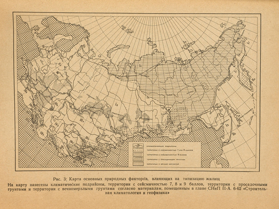 Map of main natural conditions affecting the typification of housing, from Stroitel’no-klimaticheskoe zonirovanie territorii SSSR [Climatic zoning of the territory of the USSR for construction] (Moscow, 1967)